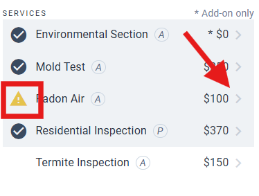 Once saved, the custom field will appear within the order. Navigate to Orders and open an existing order or create a new one. After selecting the service, a warning icon may appear indicating missing information. Expanding the service will display the custom field for entry.