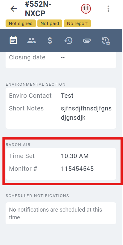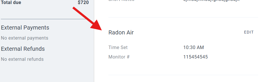 The entered information will appear at the bottom of the order under the corresponding service section.