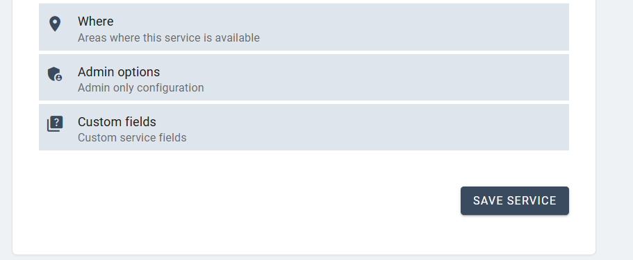 Choose the service you would like to edit. Scroll to the bottom of the service page to locate the Custom Fields section.