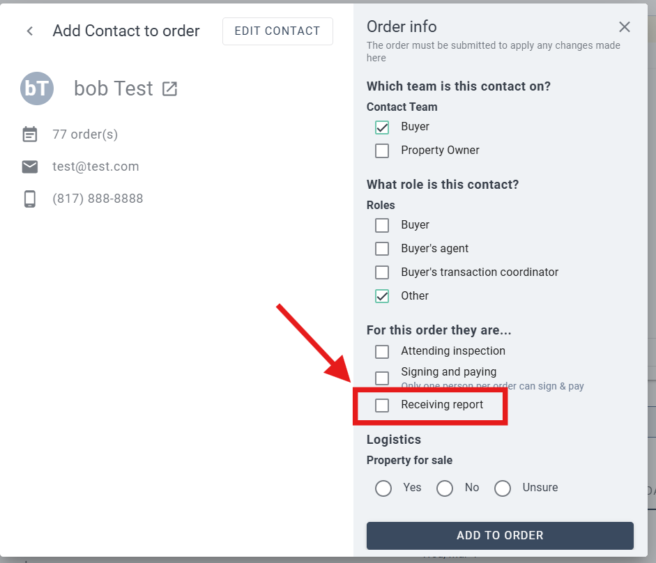 Go to the Contacts tab to enable “Receives Report”
