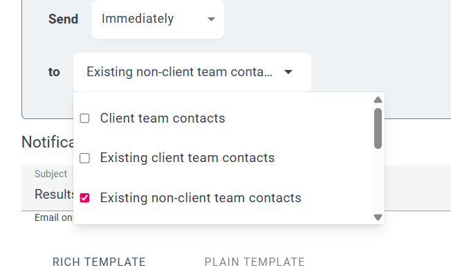 By default, Keystone’s built-in Results Ready notification is configured to send reports only to client team contacts (clients and agents). If you need to send the report to someone outside of that group (e.g., third parties, additional stakeholders), you must create a custom notification.